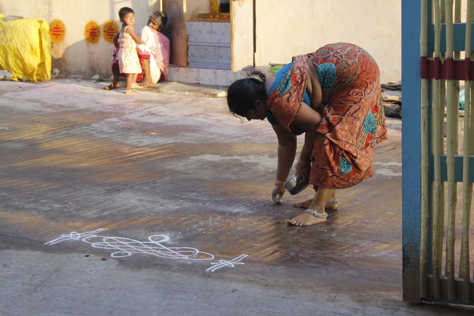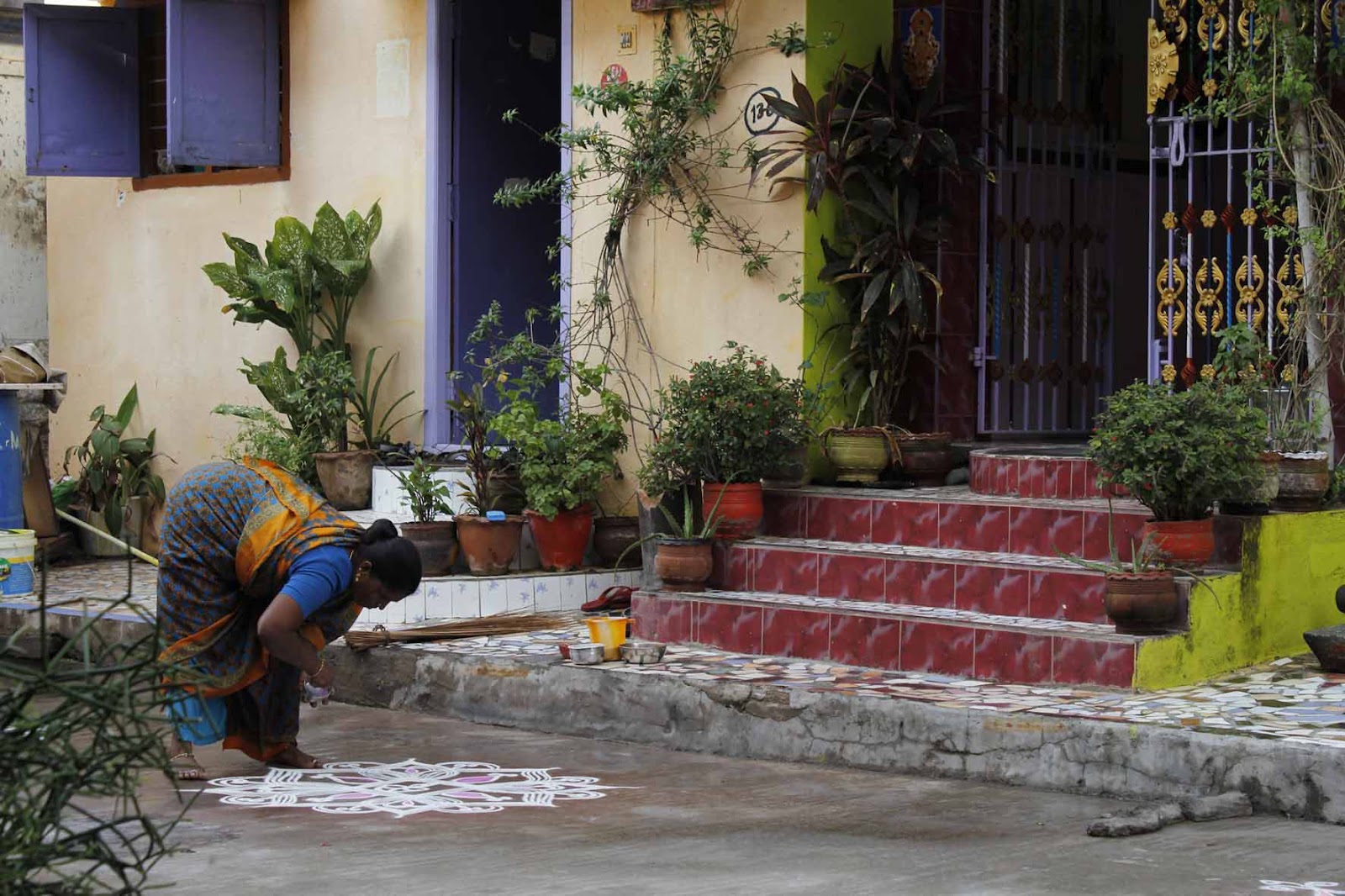 One of the habits still widely spread is that of women drawing different designs in front of their doors at dawn.