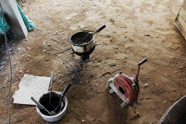 A área de fundição também é solo sagrado e onde só se pode entrar descalço, o que de certa forma explica a falta de protecção, os deuses vigiam para que ninguém se magoe.