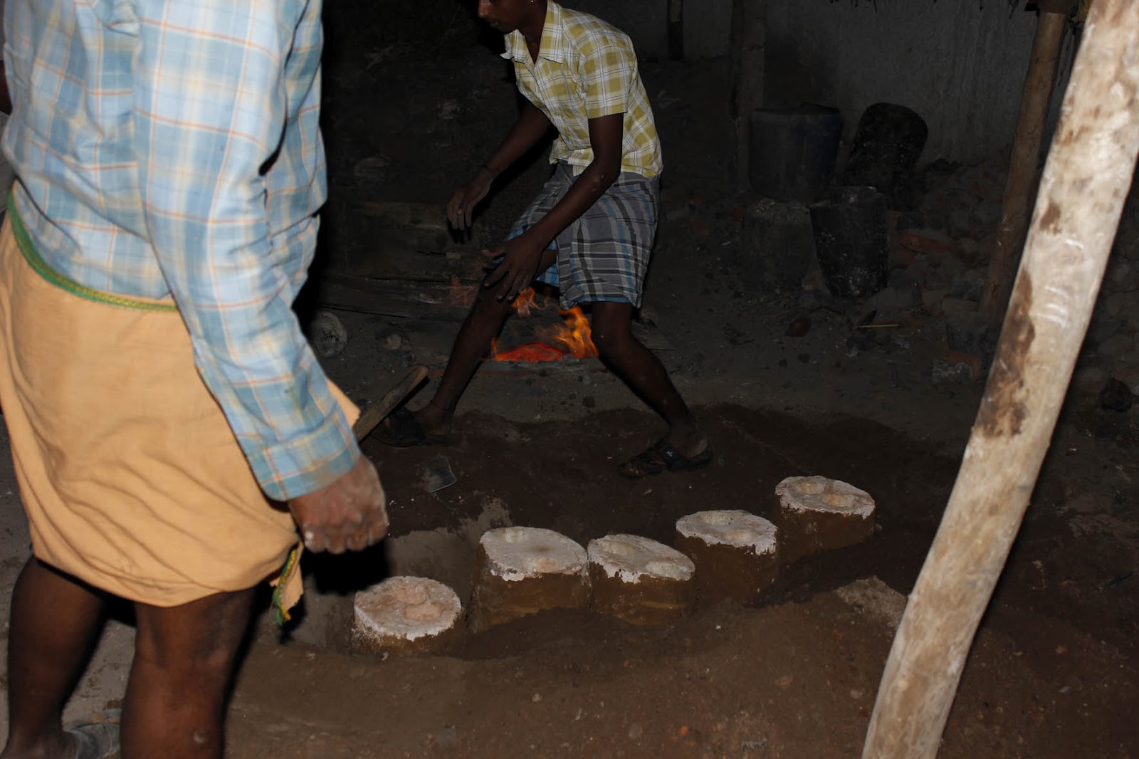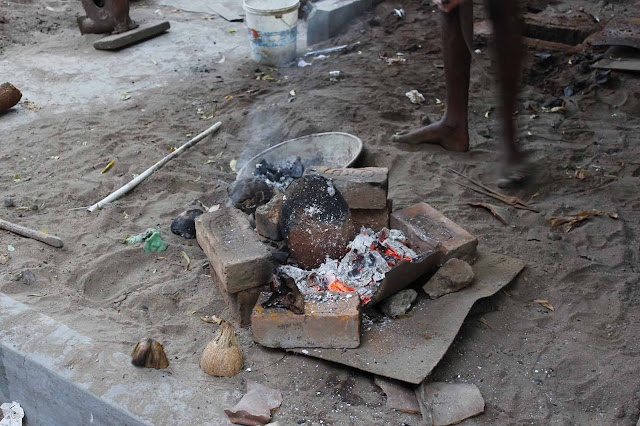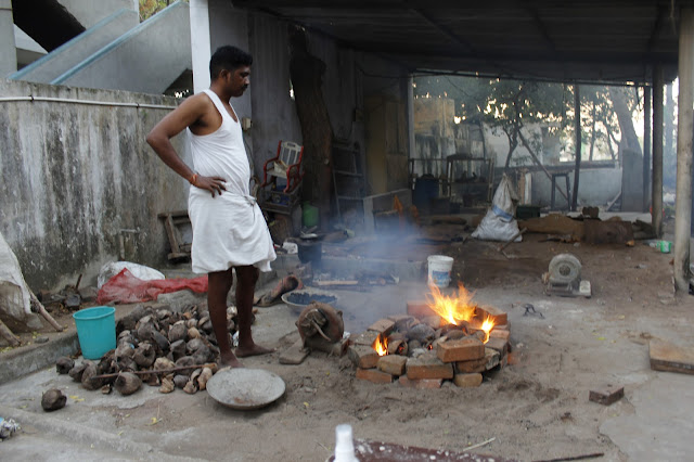 Somu, aprendeu a profissão com o pai que aprendeu com o avô e assim há gerações, que a fundição é um momento sagrado, portanto, uma Puja ou oração é sempre necessária, haja uma quantidade grande ou pequena de metal para vazar.